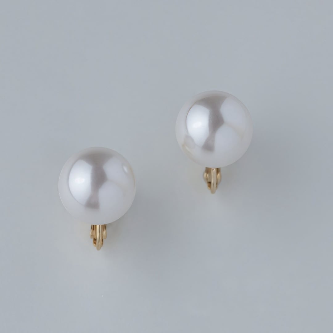 存在感のある16mmの大粒パールが、耳元に気品を添えるイヤリング。